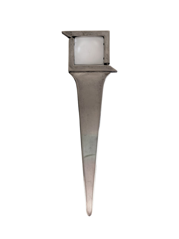 Prezzo di listino €120,00Tagliacarte in metallo con lente di ingrandimento disegnato negli anni '70 da L. Benaglia per Cleto Munari serie Forme Contemporanee. Linee pulite e funzionali, nella sua semplicità è un oggetto elegante e senza tempo. Buone condizioni... -