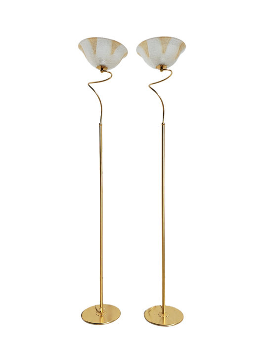 Coppia di lampade a piantana con base e stelo in metallo dorato e paralume in vetro, anni 90. Queste eleganti lampade da terra di gusto classico sono formate da una base circolare, un lungo stelo che...Prezzo di listino €230,00 -