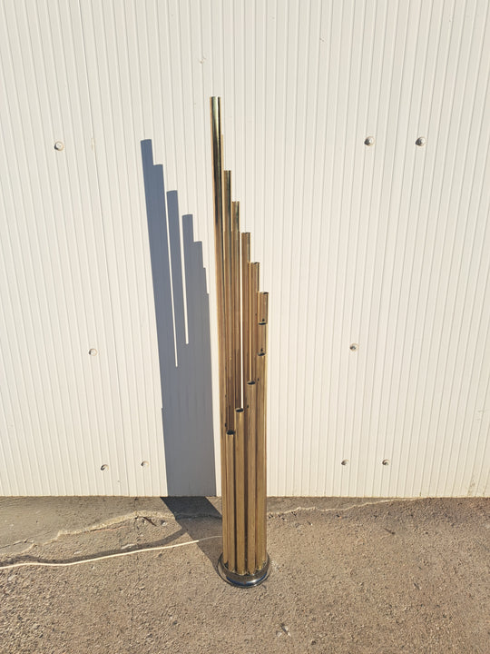 Lampada da terra a 12 canne dorate e 12 punti luci, produzione anni 70, modello Organ Pipe / Canne d'organo attribuita a Goffredo Reggiani. Lampada a piantana a base circolare dalla quale svettano 12 tubi verticali...Prezzo di listino €0,00 -